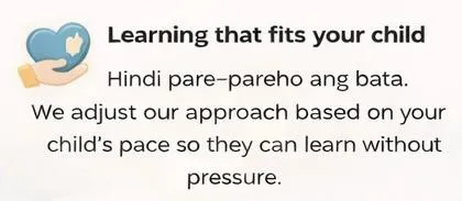 We offer flexible language options including English, Tagalog, and Kapampangan, depending on your child’s needs and comfort.